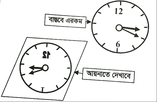 একটি ঘড়িতে ৩টা ২০ বাজে । ঘড়ির বিপরীতে আয়নায় প্রতিবিম্বে কয়টা দেখা যাবে?