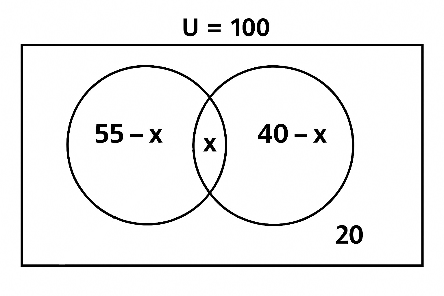শুধু ফ্রেঞ্চ বলতে পারে = (55 - 15) জন = 40 জন