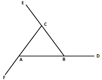 ত্রিভুজের যেকোন বাহুকে বর্ধিত করলে বহিঃস্থ যে কোণ উৎপন্ন হয় তা বিপরীত অন্তঃস্থ দুই কোণের সমষ্টির সমান।