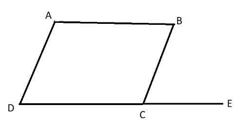 ABCD সামান্তরিকের DC ভূমিকে E পযর্ন্ত বর্ধিত করা হল, ∠BAD = 100° হলে ∠BCE = কত?