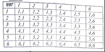 এখানে, দুইটির যোগফল ৬ হতে পারে ৫টি ক্ষেত্রে (১ +৫, ২ + ৪, ৩ + ৩, ৪ + ২, ৫ + ১)