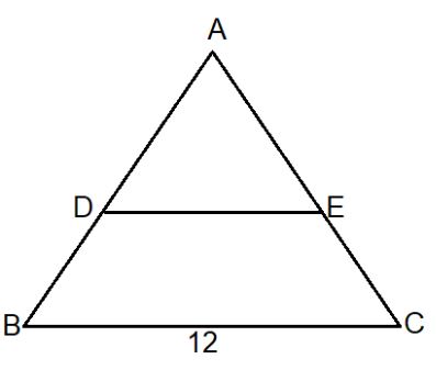 ΔABC এ AB ও AC বাহুর মধ্যবিন্দু যথাক্রমে D, E। যদি BC = 12 সে.মি. হয়, তবে DE = কত?