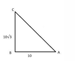 ধরি, ∆ABC সমকোণী ত্রিভুজে, AB = 10 মিটার এবং উচ্চতা BC=10√3 মিটার।