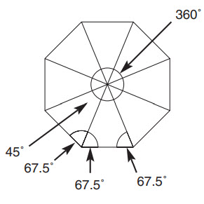 0 (360÷8); the remaining angles, therefore, are equal to 180-45 = 135 or 67.5
