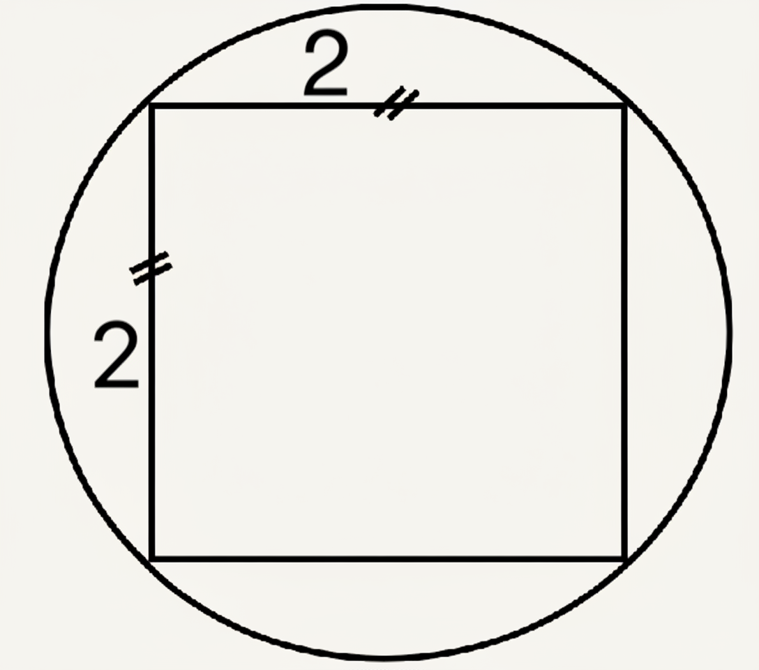 বৃত্তস্থ বর্গের প্রত্যেক বাহুর দৈর্ঘ্য = 2 সে.মি.