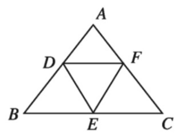 ∴ সমবাহু ত্রিভুজের বাহুগুলোর মধ্যবিন্দুসমূহ যোগ করলে উৎপন্ন ত্রিভুজটি সমবাহু হবে।