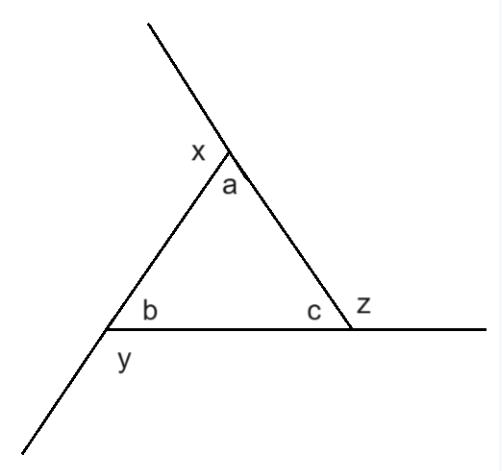 ∴ কোন ত্রিভুজের তিনটি বাহুকে বর্ধিত করলে উৎপন্ন বহিঃস্থ কোণ তিনটির সমষ্টি ৩৬০ ডিগ্রী।