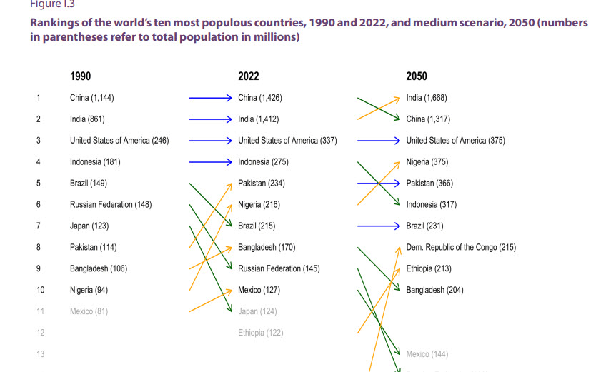 UNFPA প্রকাশিত বিশ্ব জনসংখ্যা রিপোর্ট-২০২২ অনুসারে জনসংখ্যায় বাংলাদেশের অবস্থান