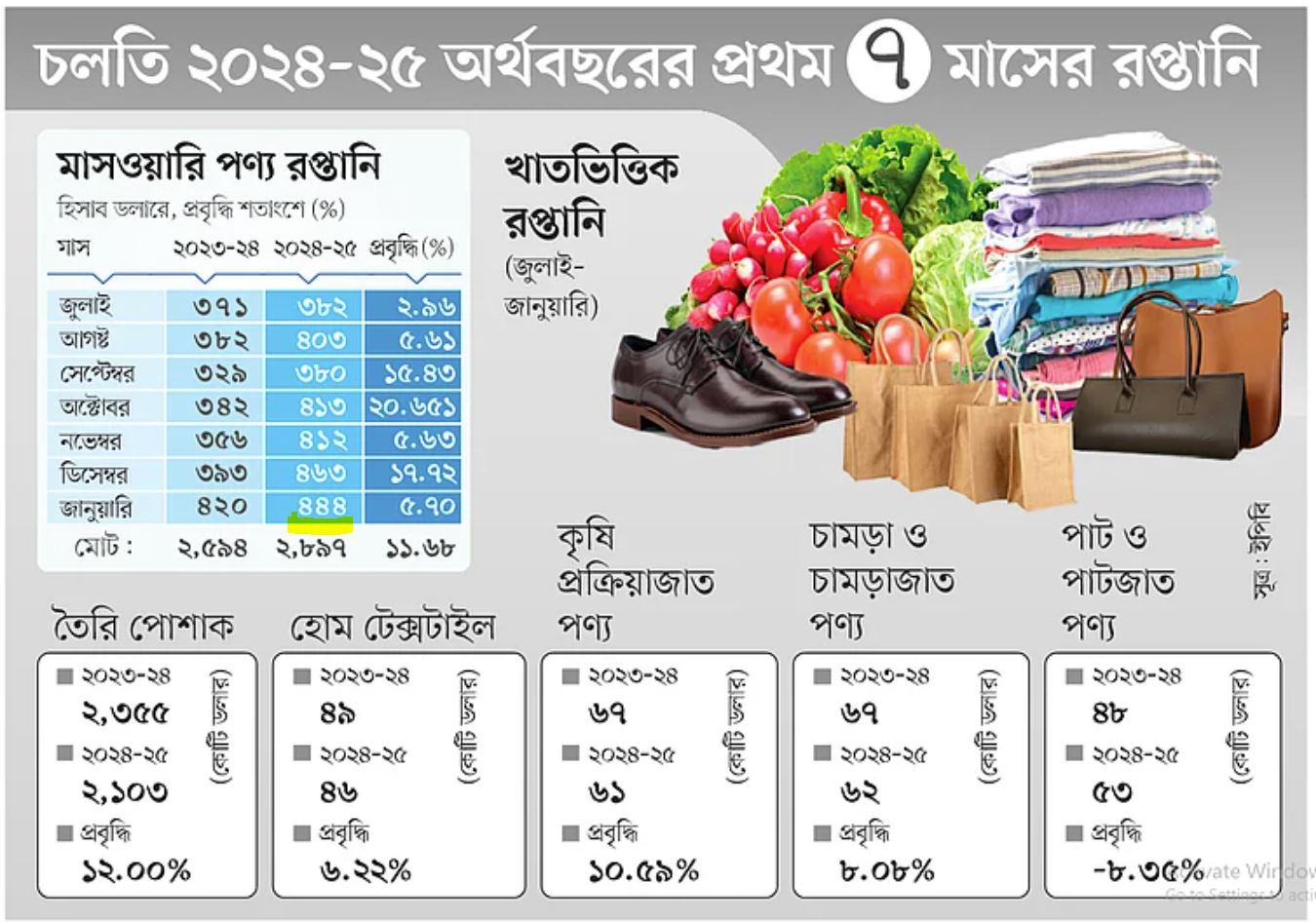 ২০২৪-২৫ অর্থবছরের জানুয়ারি মাসের মোট রপ্তানি আয়ের পরিমাণ কত?