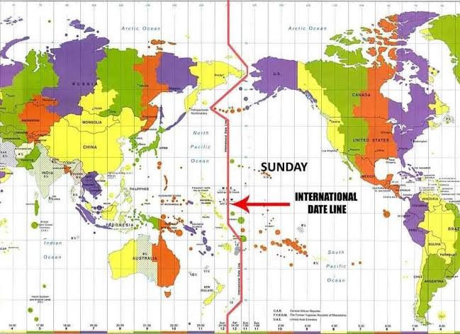 কোনাে নির্দিষ্ট স্থান থেকে পূর্ব বা পশ্চিম দিকে ১৮০° দ্রাঘিমারেখা অতিক্রম করলে সমস্যা দেখা দেয় । এ সমস্যা সমাধানের জন্য ১৮০° দ্রাঘিমা রেখাকে অবলম্বন করে সম্পূর্ণভাবে জলভাগের উপর দিয়ে ( প্রশান্ত মহাসাগর ) । উত্তর - দক্ষিণ মেরু পর্যন্ত প্রসারিত আঁকা বাঁকা যে রেখা কল্পনা করা হয়েছে তাকে আন্তর্জাতিক তারিখ রেখা বলে ।