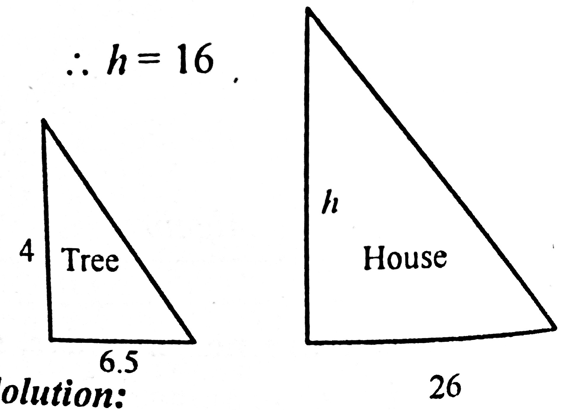 ছায়ার দৈর্ঘ্য 26 মিটার হলে বাড়ির দৈর্ঘ্য হয় = \(\frac{{4 \times 26}}{{6.5}}\) = 16 মিটার