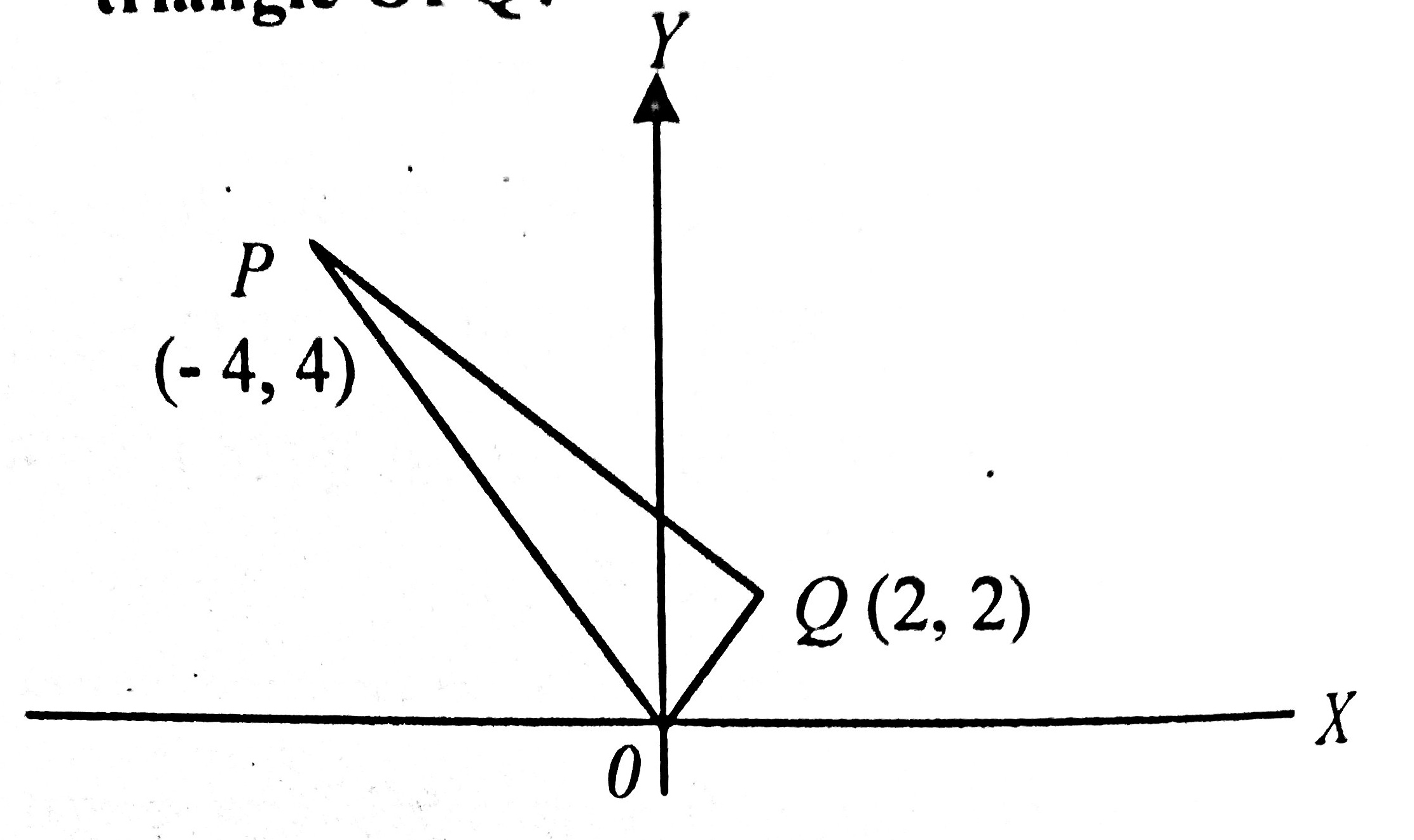 QO = \(\sqrt {{{(2 - 0)}^2} + {{(2 - 0)}^2}} = \sqrt {{2^{2\;}} + {2^{2\;}}} \)