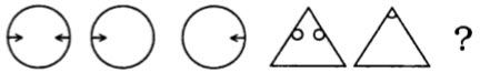 - প্রথম বৃত্তে পরস্পর বিপরীত দিকে দুটি তীর চিহ্ন রয়েছে । - যেখানে দ্বিতীয় ও তৃতীয় বৃত্তে পরস্পর বিপরীত দিকে একটি করে তীর চিহ্ন রয়েছে । - একইভাবে যেহেতু চতুর্থ চিত্রটির ত্রিভুজে পরস্পর বিপরীত দিকে দুটি ছোট বৃত্ত রয়েছে । - তাই পঞ্চম চিত্রটিতে যে দিকে ছোট বৃত্ত রয়েছে ষষ্ঠ চিত্রটিতে তার বিপরীত দিকে ছোট বৃত্ত থাকবে ।