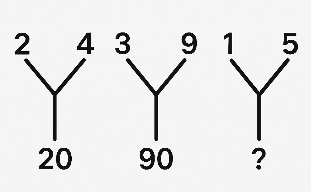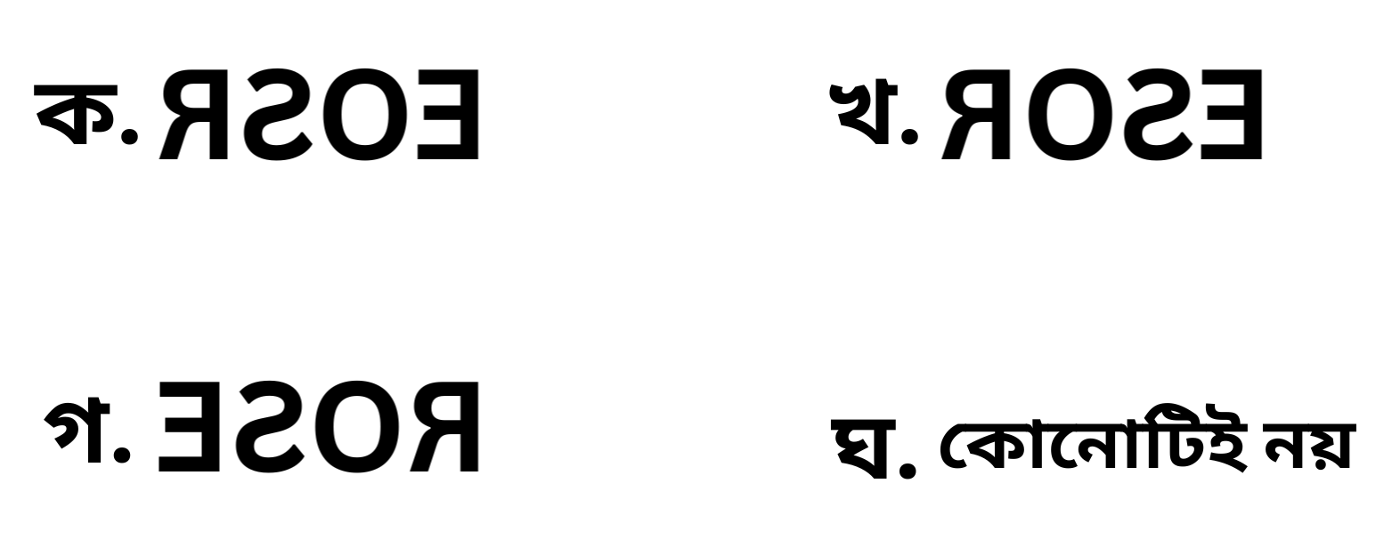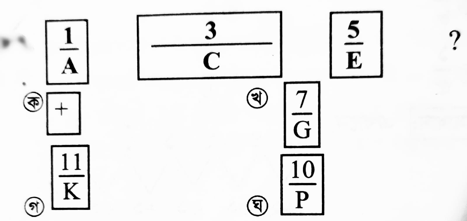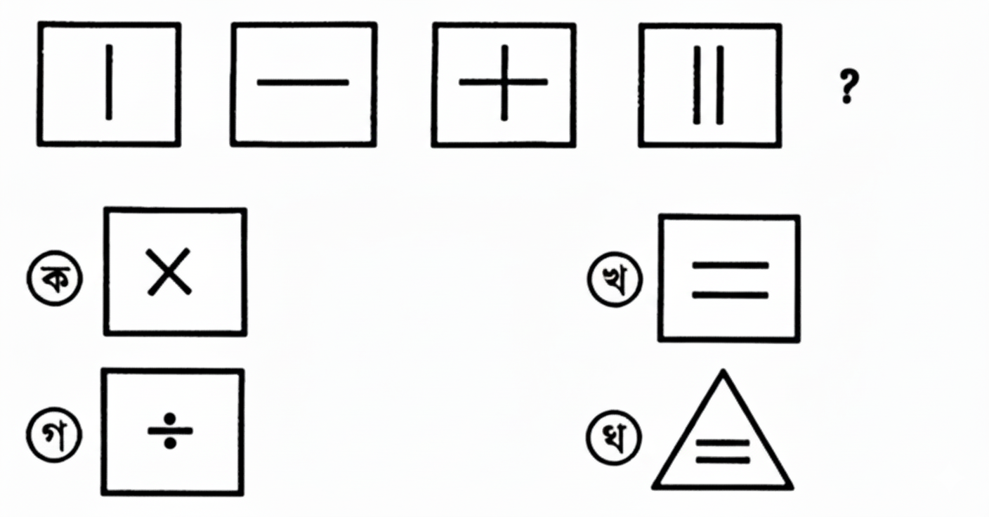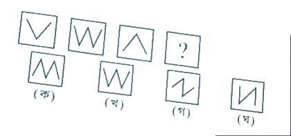 প্রথম চিত্রে একটি উল্লম্ব দাগ আছে, দ্বিতীয় চিত্রে একটি অনুভূমিক দাগ। তৃতীয় চিত্রে উল্লম্ব ও অনুভূমিক — দুটোই একসাথে এসেছে (অর্থাৎ যোগ হয়েছে)। চতুর্থ চিত্রে দেখা যাচ্ছে দুটি উল্লম্ব দাগ। অতএব নিয়ম অনুযায়ী পরবর্তী চিত্রে দুটি অনুভূমিক দাগ থাকবে।