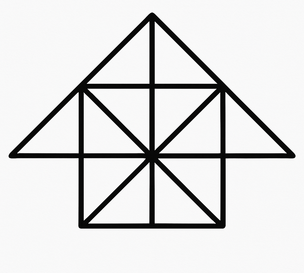 চিত্রে একটি ষড়্কোণ (হেক্সাগন) আছে যা ত্রিভুজাকার রেখা দিয়ে গঠিত। এই চিত্রে ত্রিভুজের সংখ্যা গণনা করতে হবে।