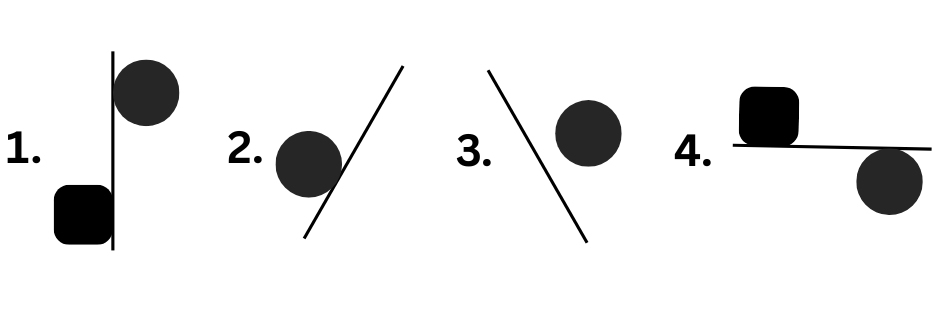 - চিত্র ১, ২ এবং ৪-এ প্রতিটি আকৃতিই বিভাজক রেখাকে স্পর্শ করে আছে। - একমাত্র চিত্র ৩-এ আকৃতিটি (বৃত্ত) বিভাজক রেখা থেকে দূরে রয়েছে এবং এটিকে স্পর্শ করেনি।