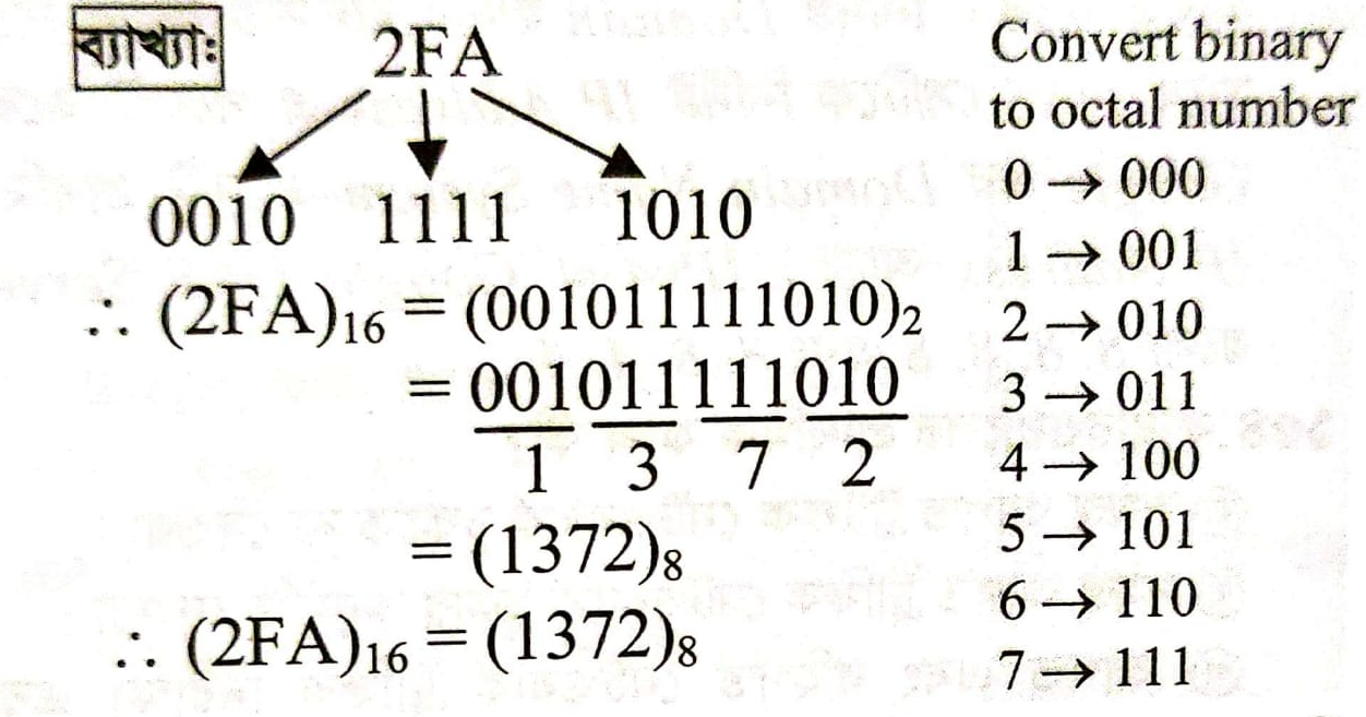 - হেক্সাডেসিমাল সংখ্যা পদ্ধতি হল একটি ভিত্তি-16 সংখ্যা পদ্ধতি, যেখানে মোট 16টি ভিন্ন চিহ্ন ব্যবহার করা হয়। - এই পদ্ধতিতে 0 থেকে 9 পর্যন্ত সংখ্যা এবং A থেকে F পর্যন্ত 6টি অক্ষর ব্যবহৃত হয়। - এখানে A=10, B=11, C=12, D=13, E=14 এবং F=15 কে প্রকাশ করে। - হেক্সাডেসিমাল সংখ্যা পদ্ধতি কম্পিউটার প্রোগ্রামিং এবং ডিজিটাল সিস্টেমে ব্যাপকভাবে ব্যবহৃত হয় কারণ - এটি বাইনারি সংখ্যাকে সংক্ষিপ্ত আকারে প্রকাশ করতে সাহায্য করে। - উদাহরণস্বরূপ, 4-বিট বাইনারি সংখ্যাকে একটি হেক্সাডেসিমাল ডিজিট দিয়ে প্রকাশ করা যায়। এটি প্রোগ্রামারদের জন্য বড় বাইনারি সংখ্যাগুলিকে সহজে পড়া এবং লেখার সুবিধা প্রদান করে। মেমরি অ্যাড্রেস, কালার কোড এবং ডিবাগিংয়ের ক্ষেত্রে হেক্সাডেসিমাল সংখ্যা পদ্ধতি বিশেষভাবে কার্যকর।