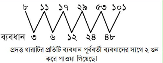 ধরি, ধারাটির n তম পদ = 263 আমরা জানি, n তম পদ = a + (n - 1) d ∴ a + (n - 1) d = 263 বা, 3 + (n - 1). 4 = 263 বা, 4(n - 1) = 263 - 3 = 260 বা, n - 1 = 260/4 = 65 বা, n = 65 + 1 = 66